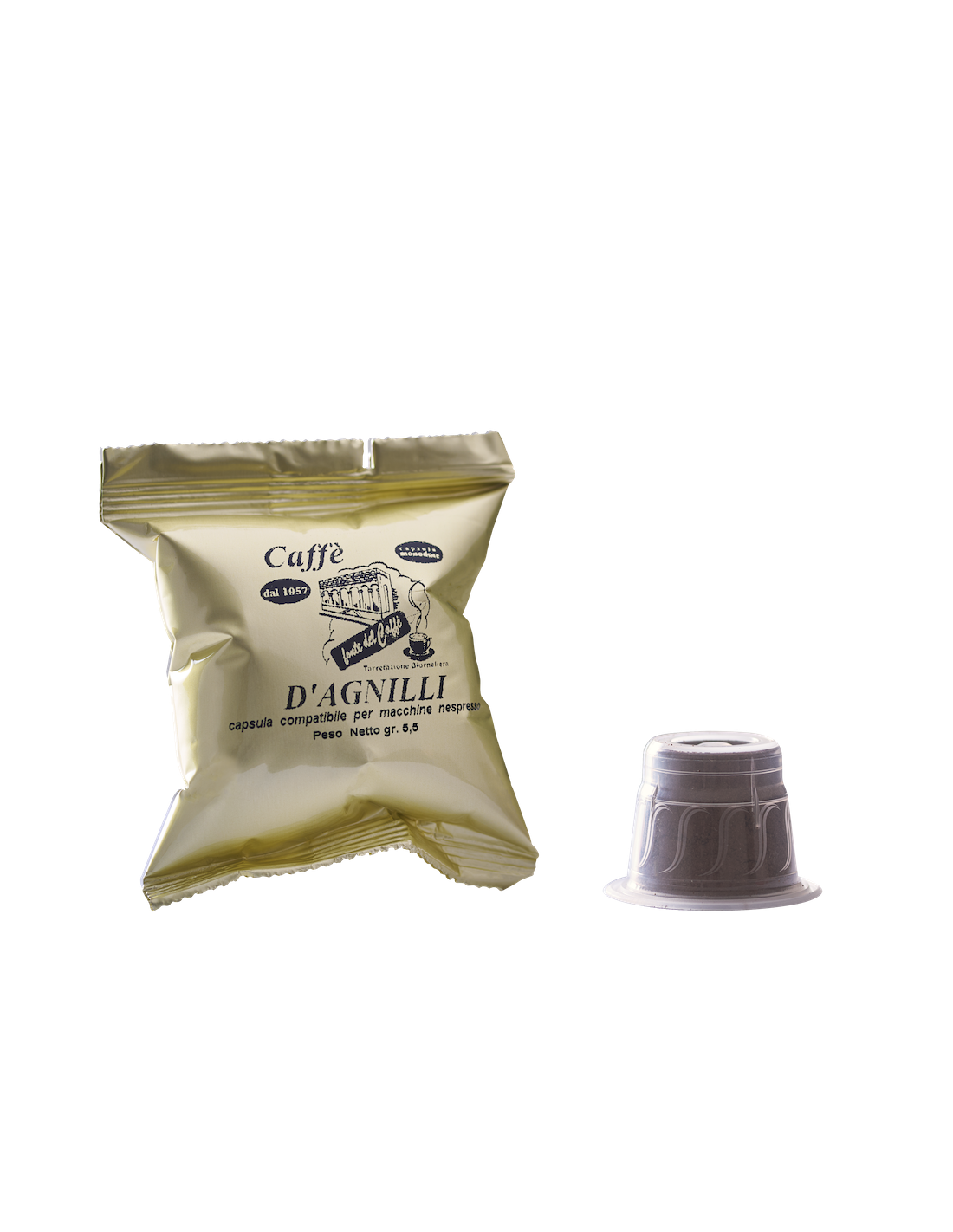 The capsule contains Miscela Extra – our leading product. It is the best selling blend in the cafés who exhibit the D’Agnilli logo. The blend is the ideal mix of high-quality Arabica and Robusta from all over the world and it is also low in caffeine. This fine blend has an exquisite flavor and you can easily make a professional coffee being in the comfort of your house. The capsules are individually sealed and stored in a controlled atmosphere to guarantee you just the perfect espresso.